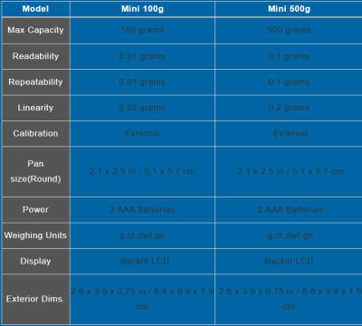 Designed for portability, the Accuris Mini Balances are powered by 2 AAA batteries (included). After one minute sitting idle, the power automatically shuts off to conserve battery life. Ideal for lab or field use, each balance includes a snap on, protective cover with instructions conveniently printed on the underside. Warranty on Mini Balances: 90 days