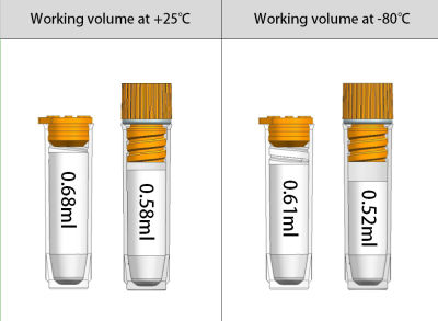 0.5mL 2D Data-Matrix coded cryogenic storage tubes, push caps, sterilized, in SBS standard 96-well (8x12) rack.