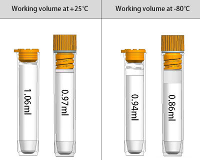 1.0mL cryogenic storage tubes, colored internal screw cap with O-ring seal, in SBS standard 96-well (8x12) rack: