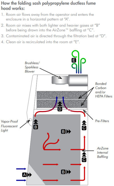 AirZone baffling establishes a proper horizontal airflow pattern and directs toxins away from the operator in a predictable pattern, eliminating "dead spots" within the hood