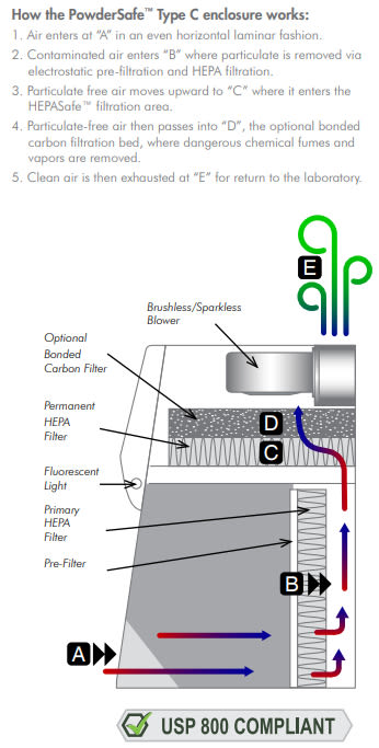 HEPASafe technology allows safe HEPA filter change while enclosure is operational